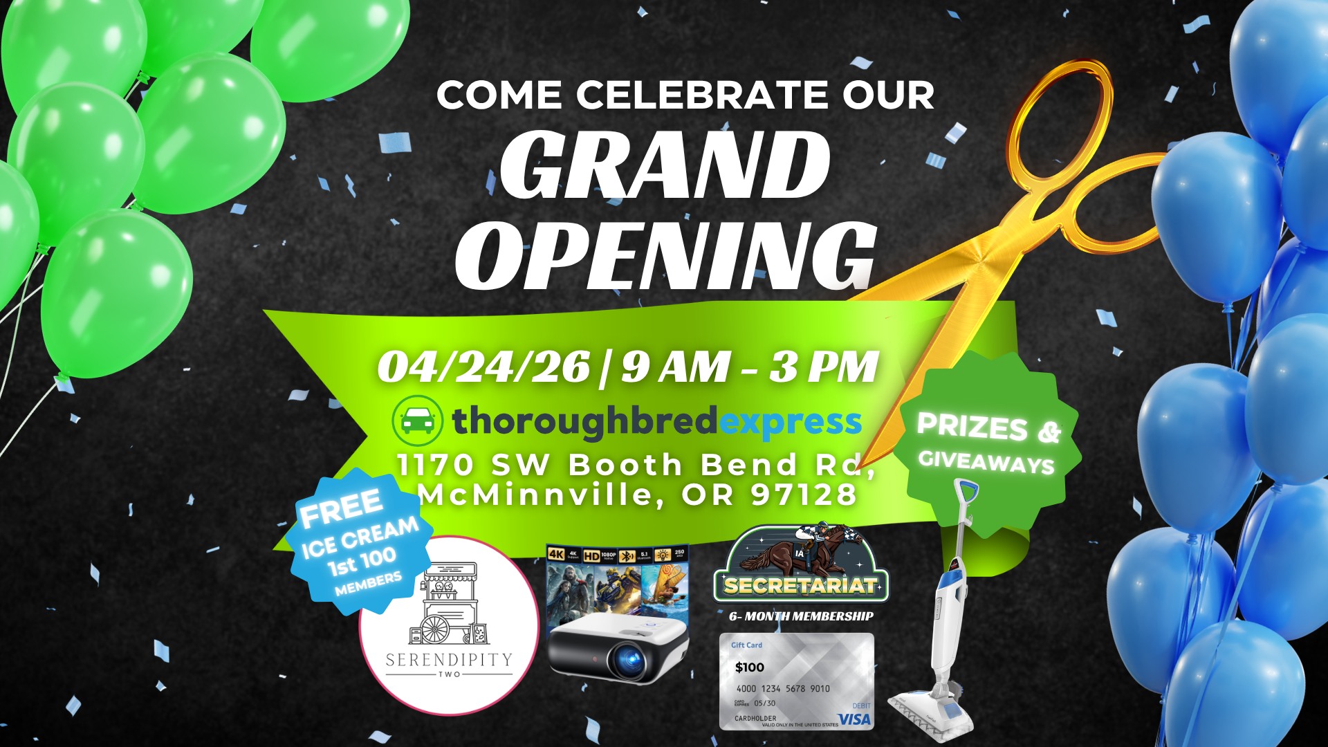 Join us for the Grand Opening of Thoroughbred Express Auto Wash at 1170 SW Booth Bend Rd, McMinnville, OR 97128 from 9 AM - 3 PM! 🚙 Details: ✂️ Ribbon cutting at 9:15 AM ✨ $1 Membership Sign Ups 🏆 Two 6-month membership drawings (Members only) 🏆 3 grand prize drawings (Members only) 🍦 Free […]